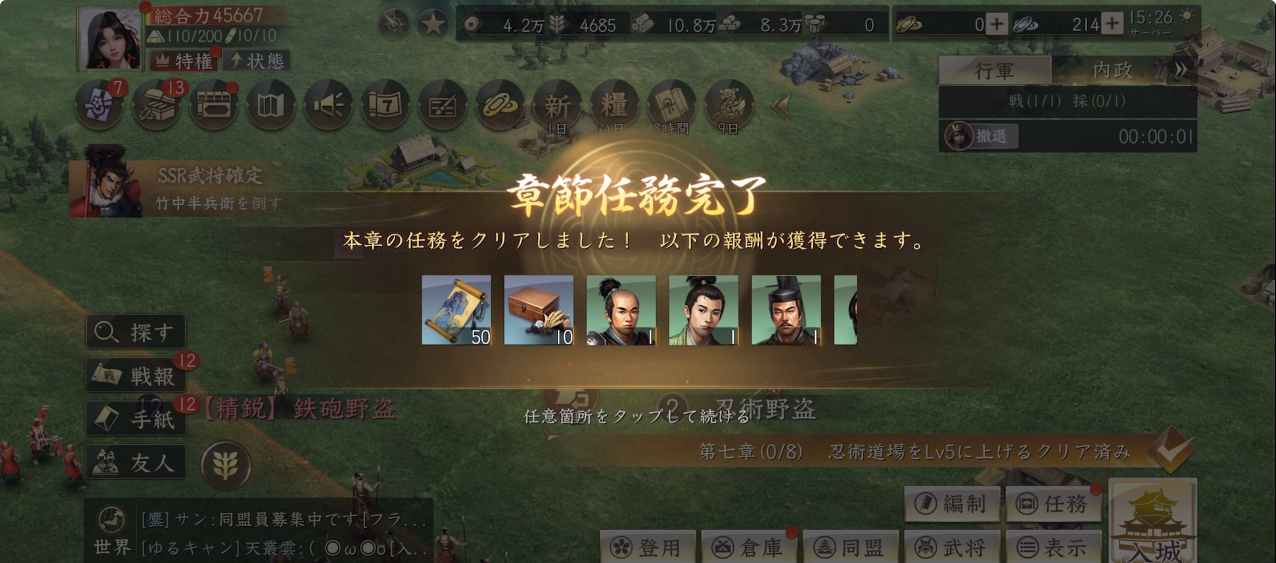 ガチャでSSR武将をゲットできれば、一気に部隊がパワーアップ!!!